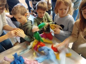 Als Bastelaktion hatte das KIGO-Team bunte Schafwolle zum Filzen von „Nudelaugen“ vorbereitet.